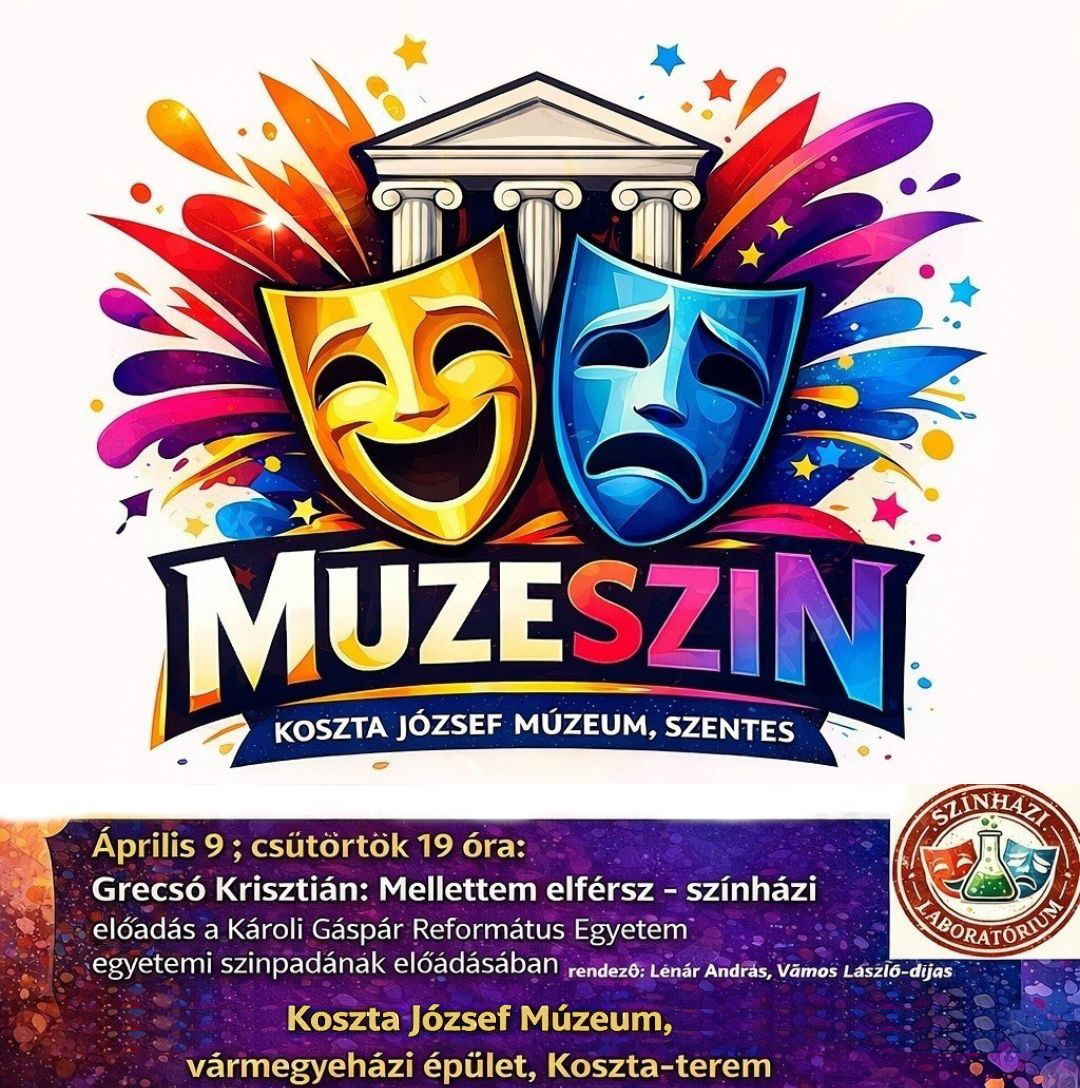 A Koszta József Múzeumban 2026. április 9-én, csütörtökön 19 órakor kezdődik a MUZESZIN címet viselő izgalmas kísérleti programsorozat második előadása. Grecsó Krisztián – Mellettem elférsz című darabját adják elő a Károli Gáspár Egyetem diákjai. Rendező: Léner András, Vámos László – díjas Helyszín: Koszta József Múzeum Koszta – terem A belépés ingyenes! Forrás