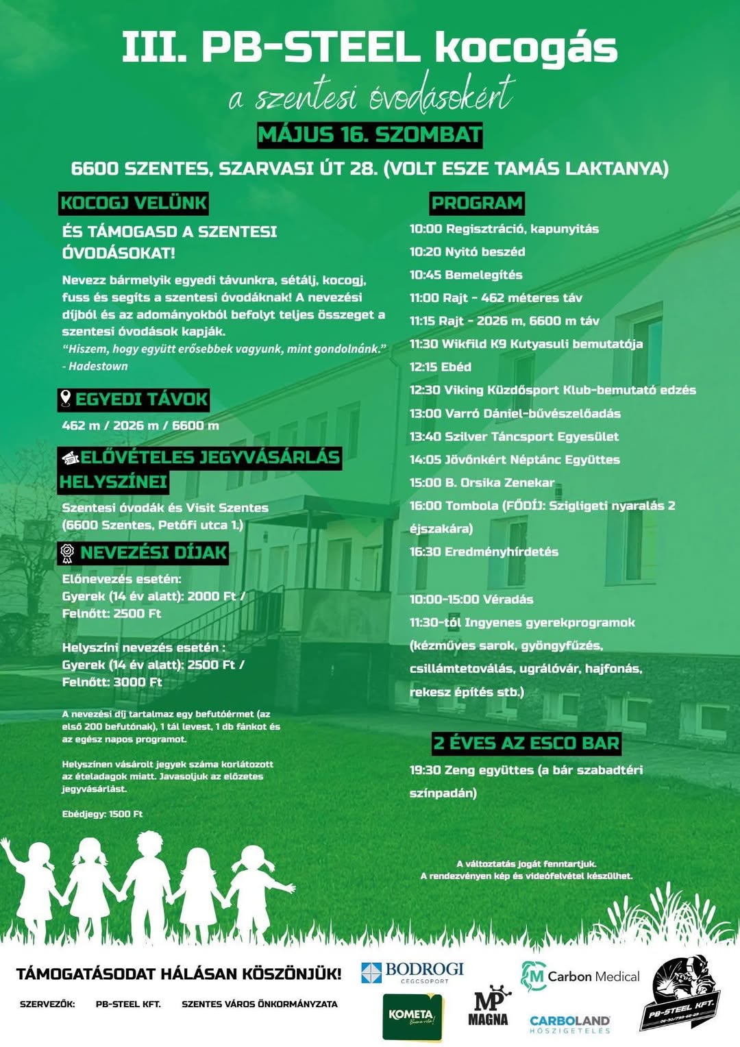 🏃♂️💚💚🏃♀️ Ez a nap nem csak a futásról szól… hanem a szentesi óvodások támogatásáról. 🙌 Akár sétálsz, kocogsz vagy futsz – minden lépéseddel segítesz. Választható távok: 462 m / 2026 m / 6600 m 📍 6600 Szentes, Szarvasi út 28. 🕙 Programok egész nap: futás, bemutatók, gyerekprogramok, tombola és még sok minden más! 💬 „Hiszem, […]