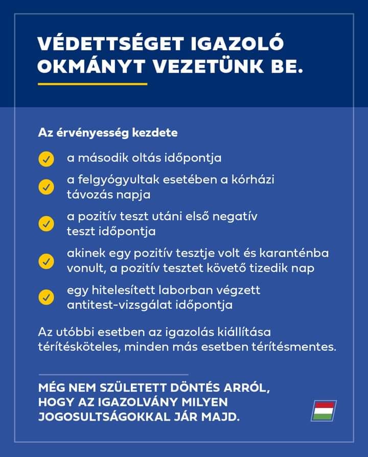 Védettségét igazoló okmányt vezetne be