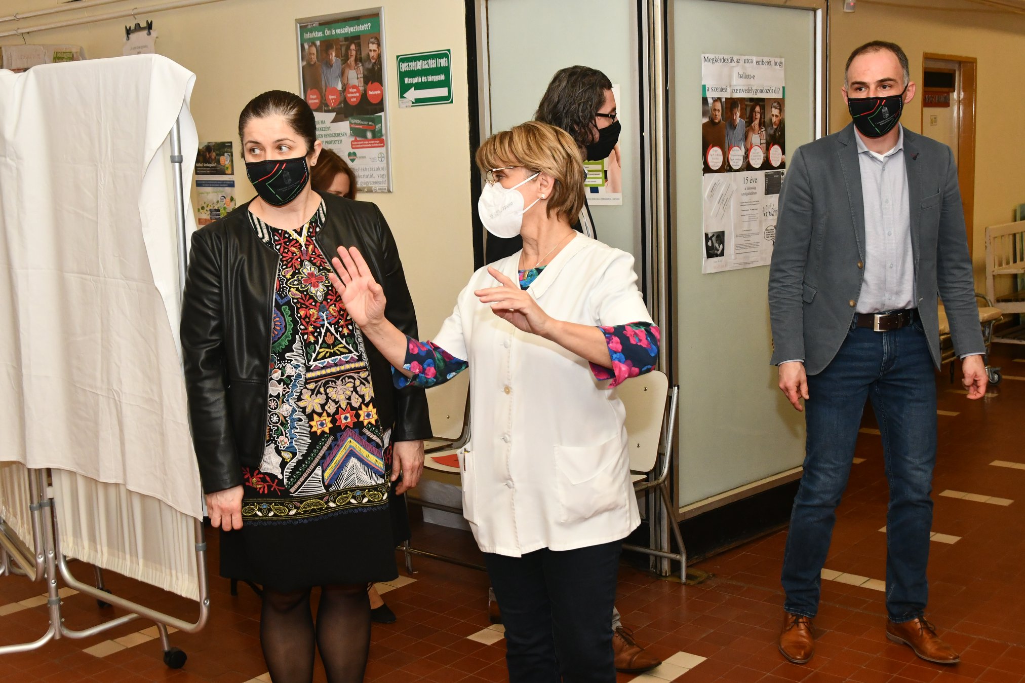 Nagypéntek ellenére hatalmas volt a forgalom a rendelőintézetben április 2-án. Minden oltóponton két termet alakítottak ki, az egyikben az oltásokat végzik, a másik megfigyelőteremként működik. A gördülékenyebb munka érdekében létrehoztak egy külön előkészítő termet is, ahol a legszakképzettebb asszisztensek készítik elő az oltóanyagot és viszik ki mindenhová. Két bejáratnál fogadják a pácienseket, a regisztrációnál 3-3 adminisztrátor dolgozik, és a katonák is mindenben segítik az itt folyó munkát, hangsúlyozta dr. Földesi Irén.