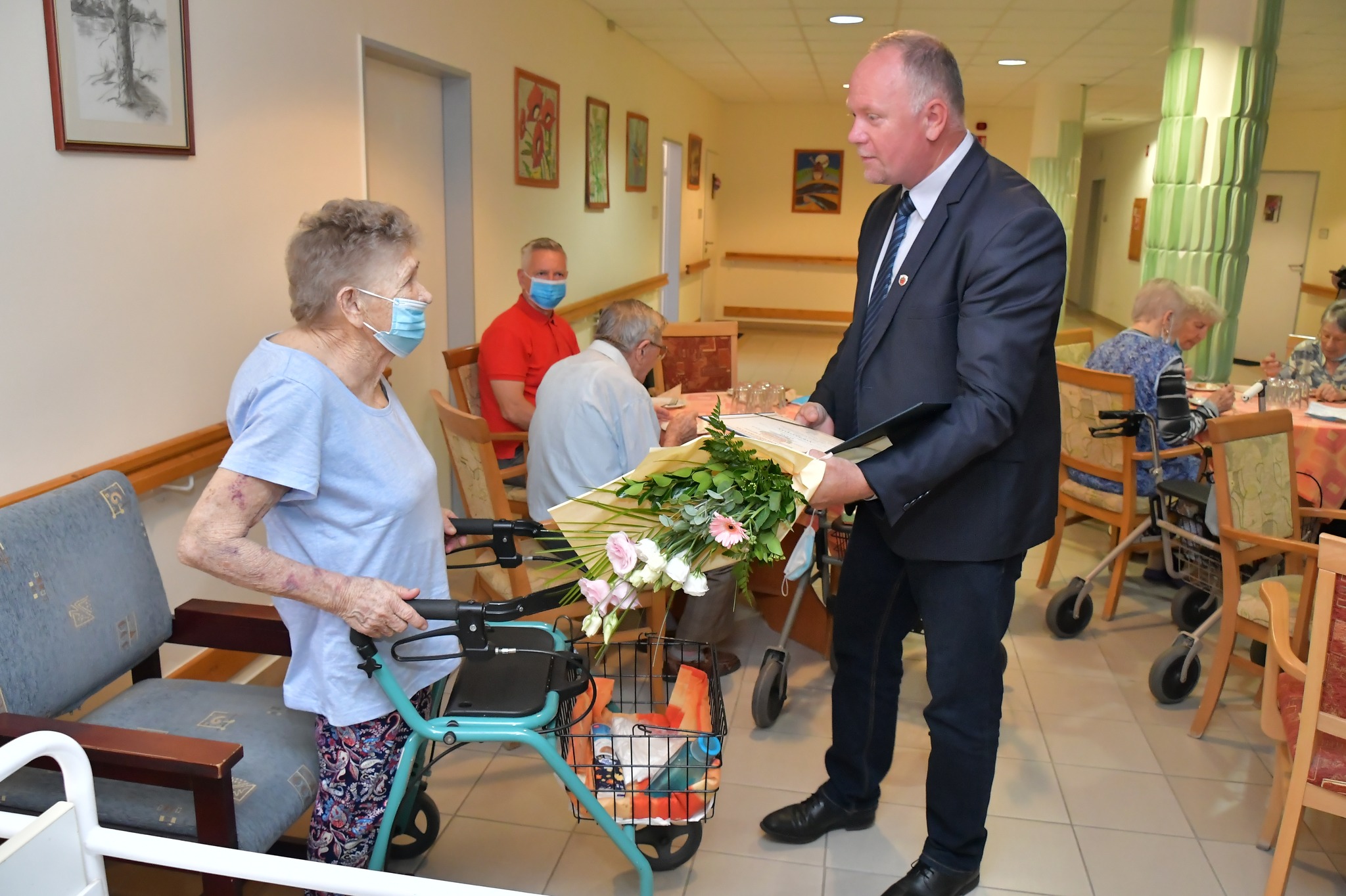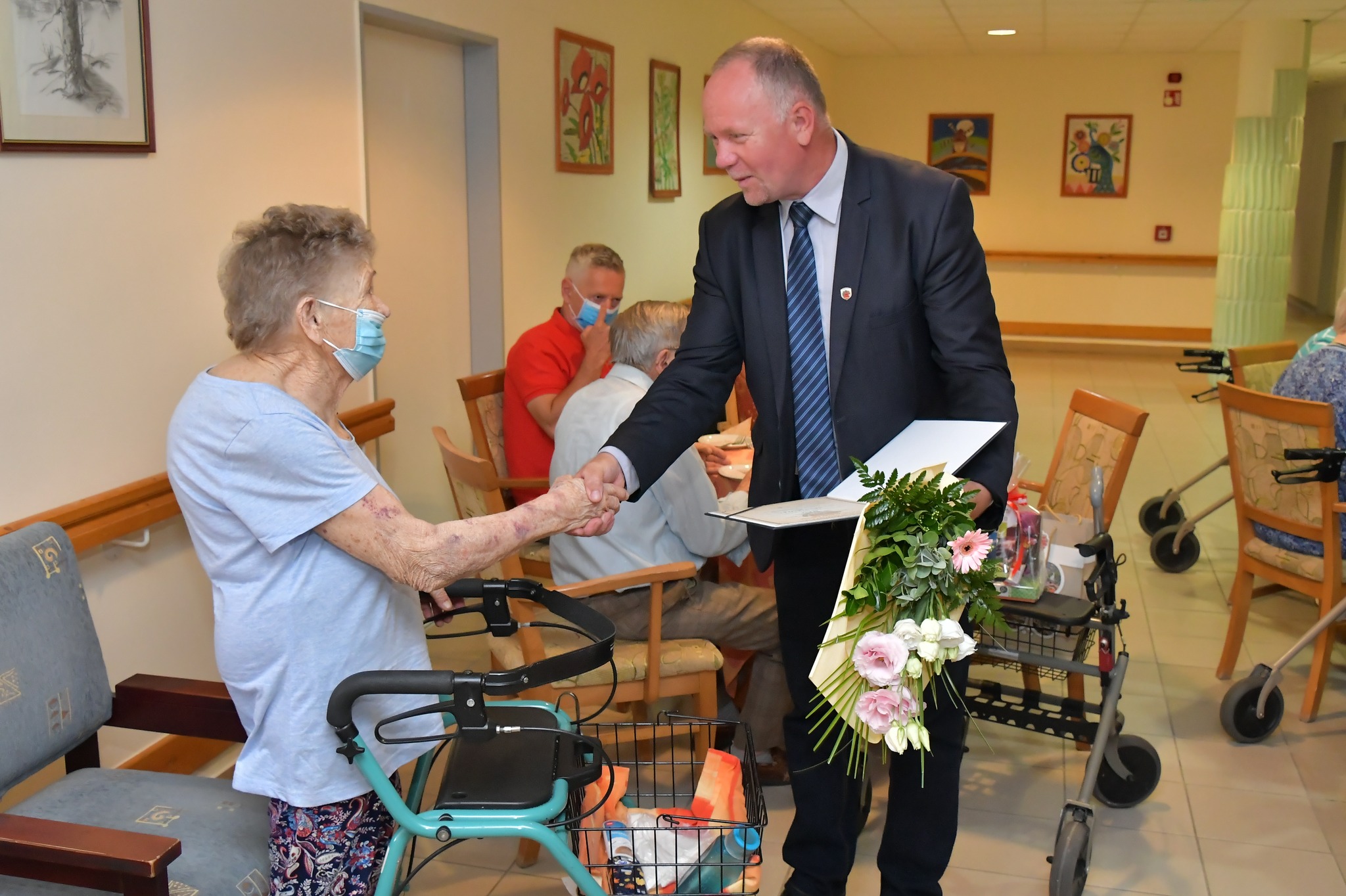 Bár márciusban töltötte be a 99. életévét, a Covid miatt csak most köszöntötték Katona Andrást születésnapja alkalmából a Dr. Sipos Ferenc Parkerdő Otthonban. Az ünnepség után még egy kedves kötelességének tett eleget Szabó Zoltán Ferenc polgármester. Szentkuti Imre Lajosné – aki szinté az otthon lakója – nem tudta átvenni vasdiplomáját a városi pedagógusnapon, így a polgármester most adta át az oklevelet, Tudósításunk a Szentesi Élet 5. oldalán található.