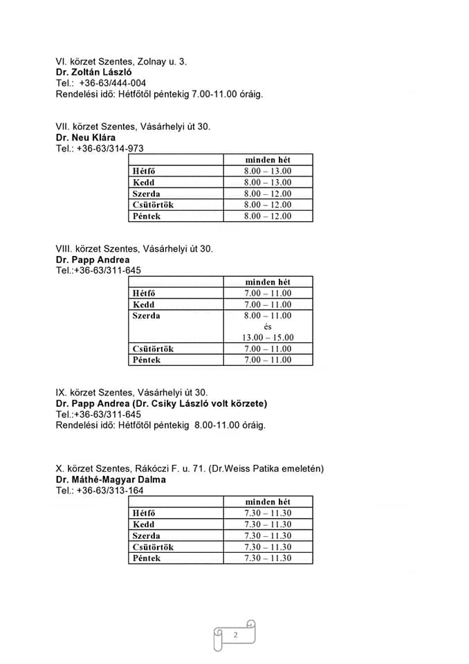 Szentesi felnőtt- és gyermek háziorvosok, valamint fogorvosok elérhetősége és rendelési ideje