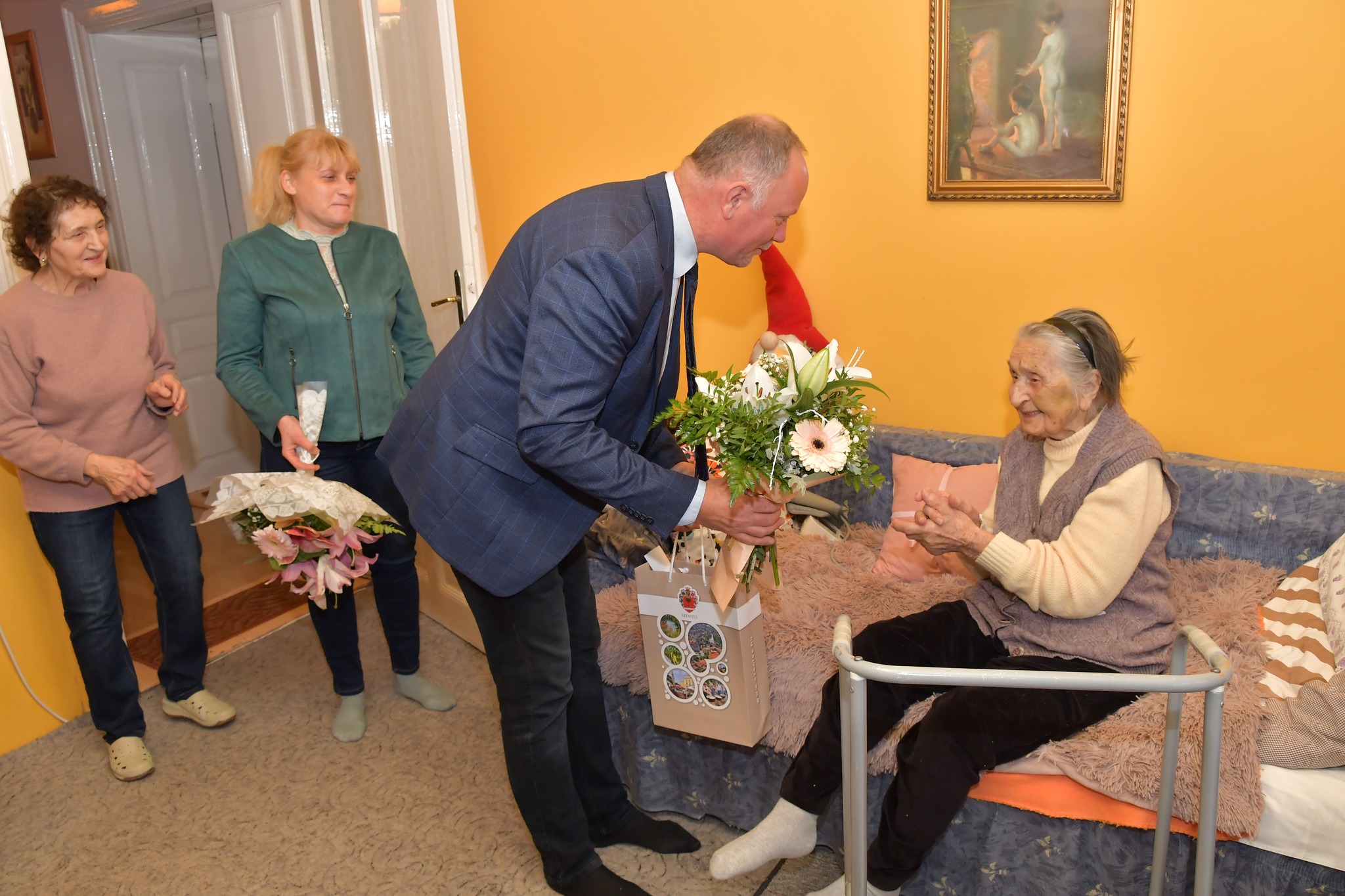 Szentes polgármestere, Szabó Zoltán Ferenc is meglátogatta őt, ahogy immár hagyományosan minden évben teszi századik születésnapja óta. „Ő volt az első százéves, akit köszönthettem polgármesterként” – mondta Szabó Zoltán Ferenc, miközben átadta az ajándékot és egy csokor virágot.