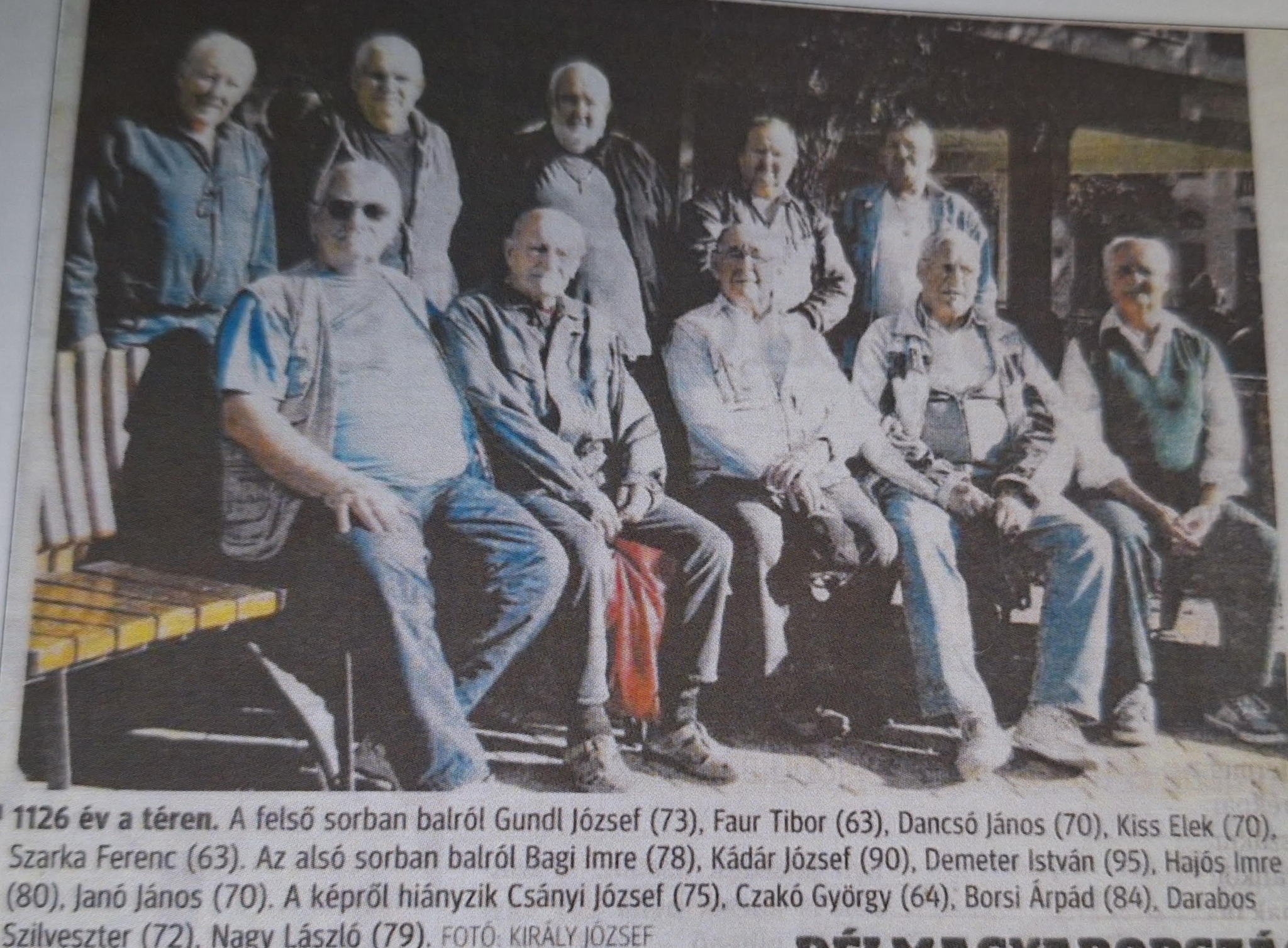 Ott volt Tóth Pista bácsi, aki megyei gólkirály is volt. Borsi Árpi játékvezető mindennap botjára támaszkodva sétált fel a Kisérből. Egri Józsi nem szállt le a drótszamárról, mindig arra támaszkodott, Nagy Józsi pedig igazi szponzora volt a helyi labdarúgásának. Kiss Elek, a végrehajtók géniusza, akire Dancsó Jani üveges mester is büszke volt, mert crossbajnok volt. Czakó Zoltán György titkolta betegségét, kitartó volt és büszke, jellegzetes formaruhájában jött minden délután közénk.
