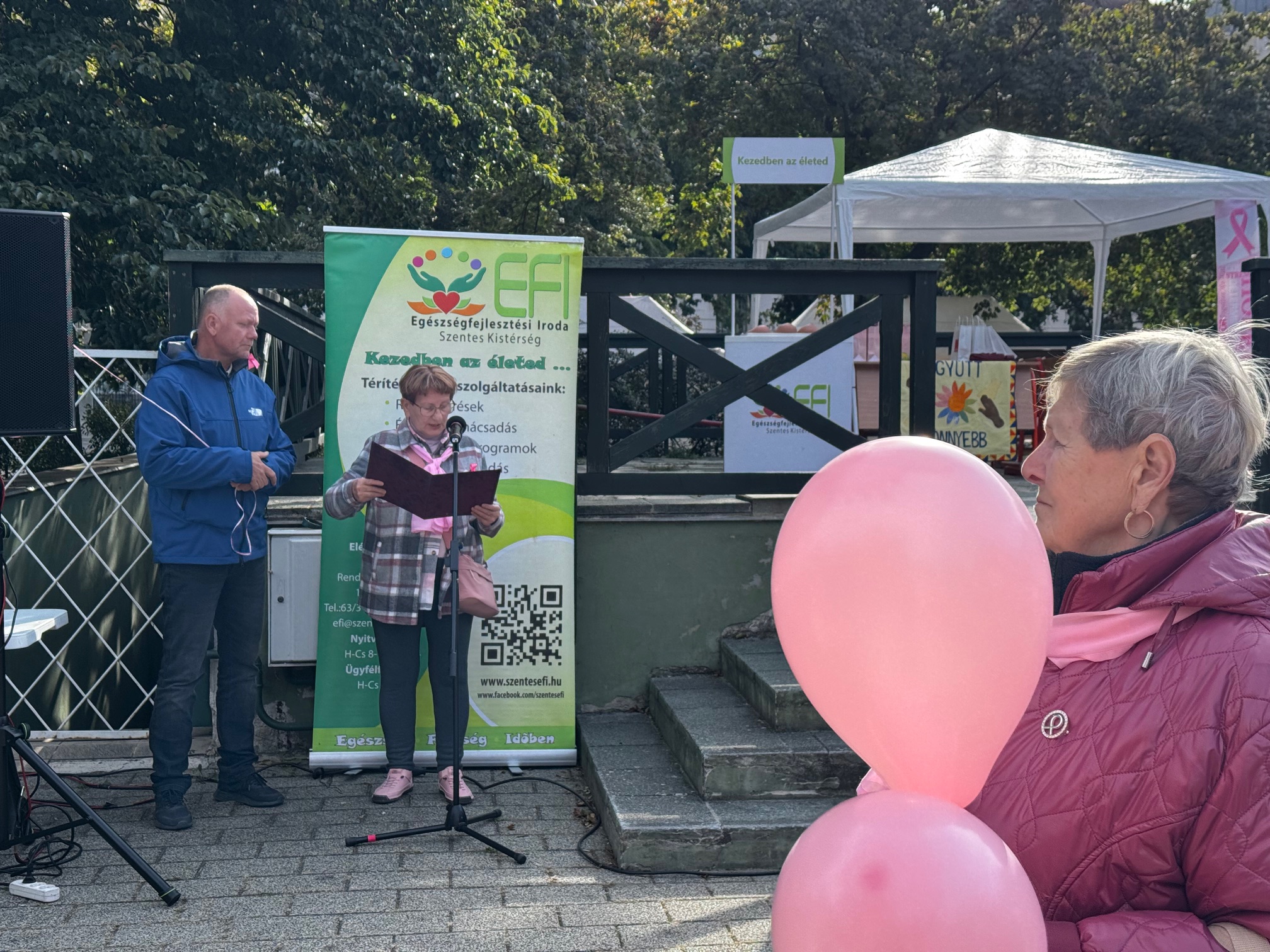 Szervezők: Az Együtt Könnyebb Klub, a Szentesi Egészségfejlesztési Iroda, a szentesi kórház, a Mammográfiás Központ, Szentes Város Önkorkormányzata, valamit az Avon.
