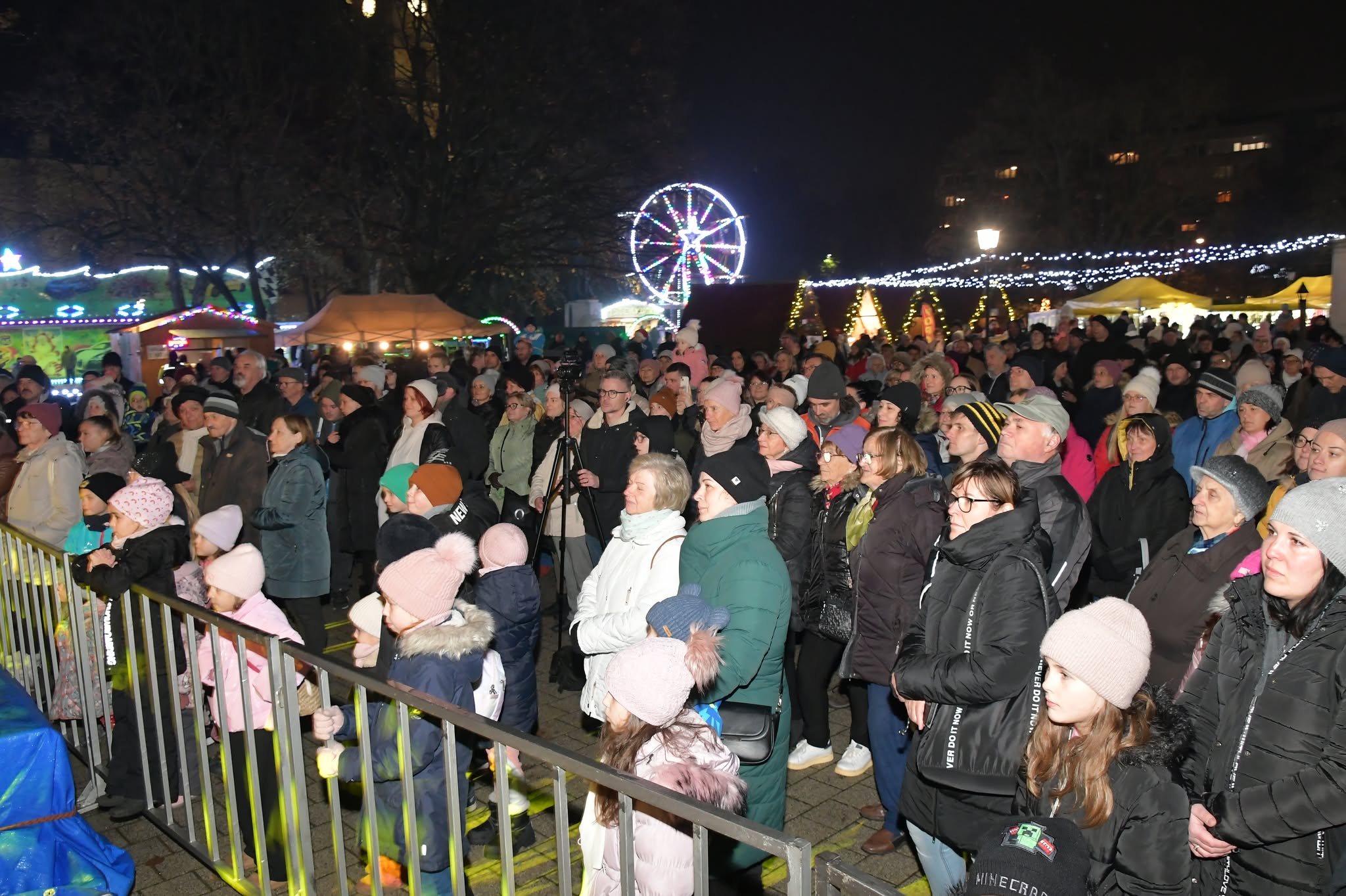Az adventi koszorú melletti színpadon a Kiss Bálint Református Általános Iskola 4., 5. és 6. osztályos diákjai adtak ünnepi műsort.