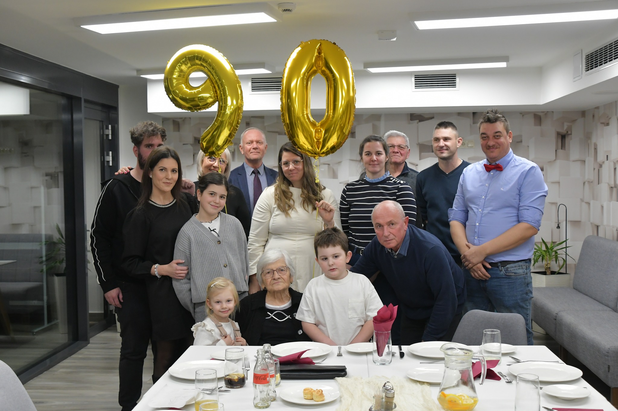 Családi körben köszöntötték 90. születésnapja alkalmából Pengő Jánosné Erzsike nénit. Az ünnepen két gyermeke, öt unokája, három dédunokája és keresztfia is jelen volt.