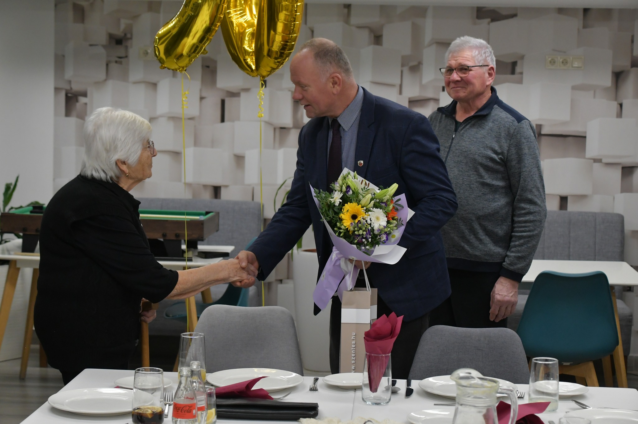 A jeles alkalomhoz Szabó Zoltán Ferenc polgármester is csatlakozott, aki a város nevében köszöntötte a 90 esztendős ünnepeltet.