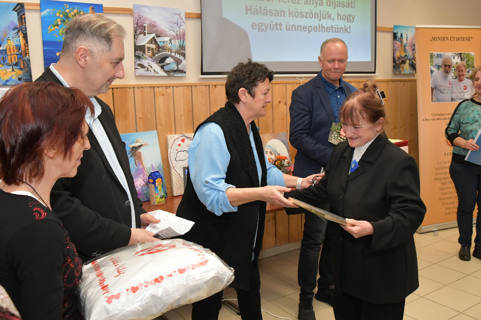 – Köszönjük, Terike, hogy színt, mosolyt, értéket és összetartozást hozol Szentes és térsége életébe! – hangzott az ünnepségen, majd Bánfiné Szőke Erika, a díj alapítója vezetésével átadták a Teréz anya-díjat Dömsödi Teréznek.