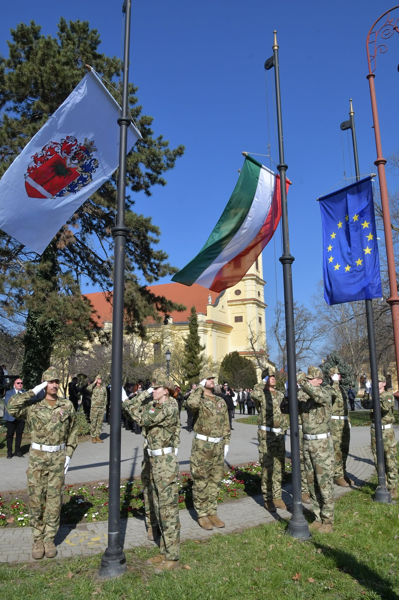 Március 15-én 10 órakor tavaszi napsütésben zászlófelvonással kezdődött a városi ünnepség a Kossuth téren, emlékezve az 1848/49-es magyar forradalom és szabadságharc évfordulójára.
