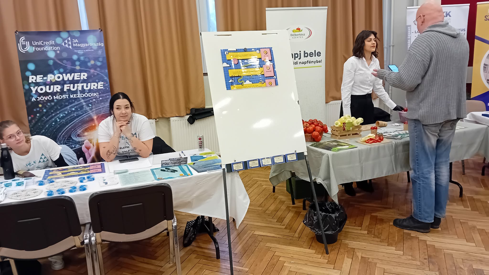 A mai napon a szentesi Művelődési és Ifjúsági Ház adott otthont a „Cégek Piaca” pályaorientációs rendezvénynek. A három helyi technikum közös szervezésében megvalósuló esemény idén is hidat vert az oktatás és a gazdasági szereplők közé, segítve a fiatalok tudatos karriertervezését.