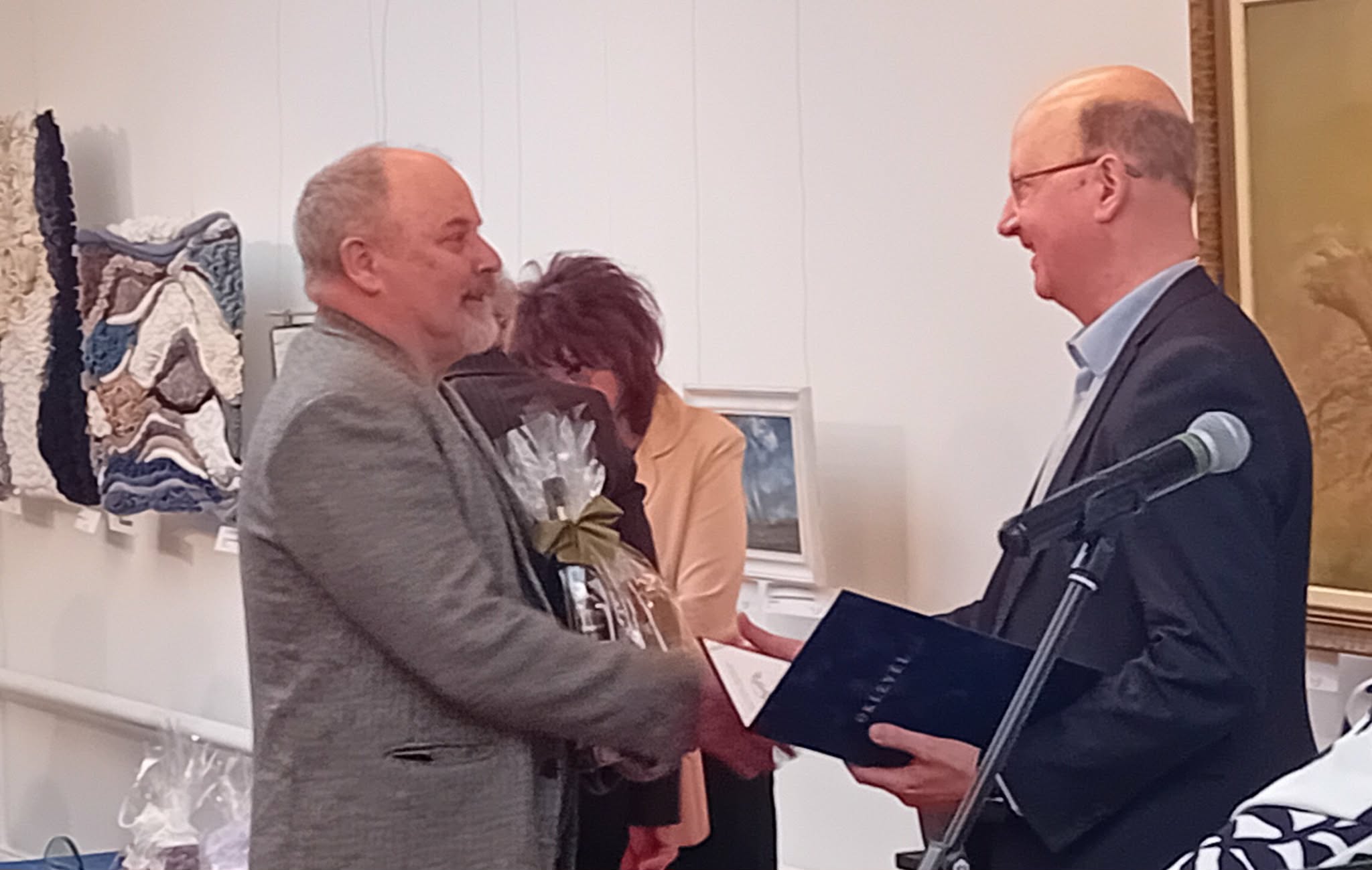 A zenés percek után Karikó-Tóth Tibor fogalmazta meg gondolatait az alkotás mibenlétéről és céljáról, a közben megtett belső útról. Mint mondta, a kiállító alkotók „őrt állnak”, szemlélődnek, érzékelnek, méghozzá olyasmit, amit nem biztos, hogy mindenki képes észrevenni. Ez a figyelem nem csak a szemlélődésben merül ki, hanem valamiféle belső készenlétként is felfogható arra, hogyan rezdül a világ. Elsősorban a pedagógusokról szól ez a tárlat, de szélesebb a kör, hiszen a kultúra területén dolgozó alkotók is jelen vannak pályamunkáikkal. Mindegyikükre egyformán jellemző, hogy a világot nem csak értelmezik, hanem újra és újra teremtenek, mert a teremtés megjelenik a művészetben és a pedagógiában is – vont párhuzamot Karikó-Tóth Tibor.