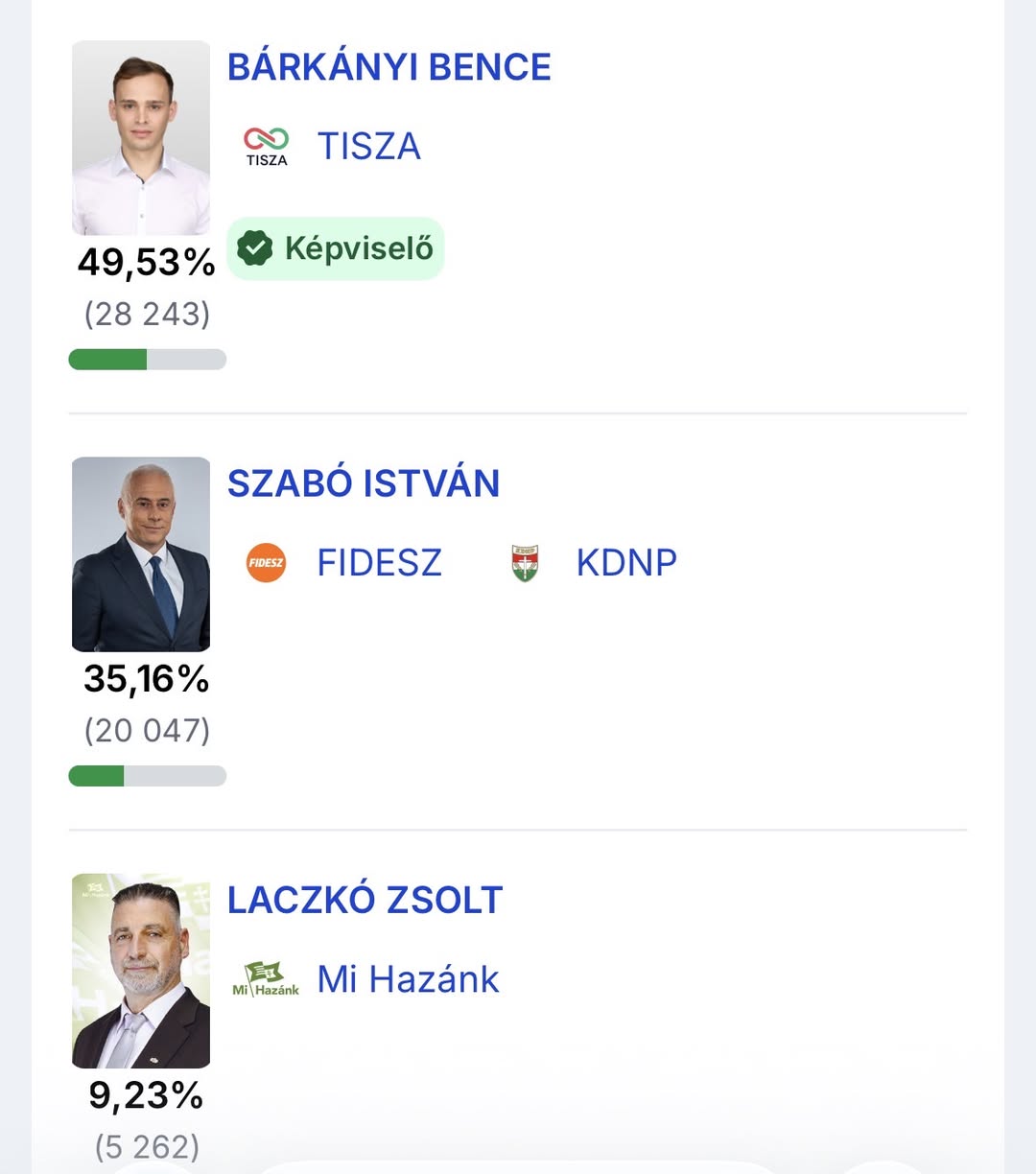Bárkányi Bence, a Tisza Párt jelöltje nyerte a 2026-os országgyűlési képviselő-választást.